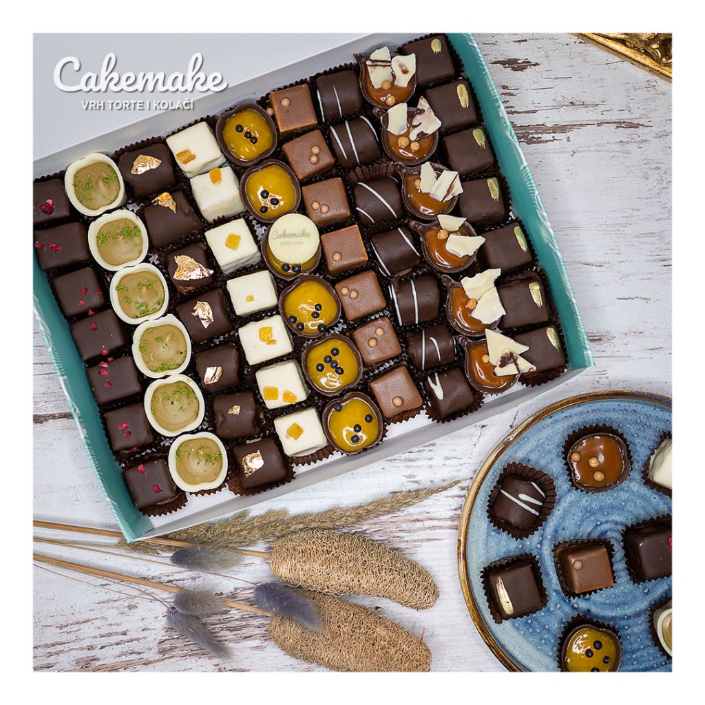 Mrsni kolači su visoko kvalitetni kolači ručne izrade po ceni od 2700 rsd/kg. Proizvode se od najkvalitetnijih domaćih i uvoznih sirovina. Pakovanje mrsnih sitnih kolača je 1kg i sadrži oko 60 komada u 9 ukusa: bajadera, lešnik kocke, rum kuglice, fere valjčići, rozen sa orasima i kinder kocka, čokoladne čašice jafa krunch, malina pistaći i karamela. *CAKEMAKE zadržava pravo izmene ukusa u toku proizvodnog procesa u cilju poboljšanja kvaliteta usluga. Dekoracija prikazana na slikama je informativnog karaktera i podložna je promeni. Za sve dodatne informacije obratite nam se putem kontakt forme na našem web sajtu ili porukom na nekoj od društvenih mreža.